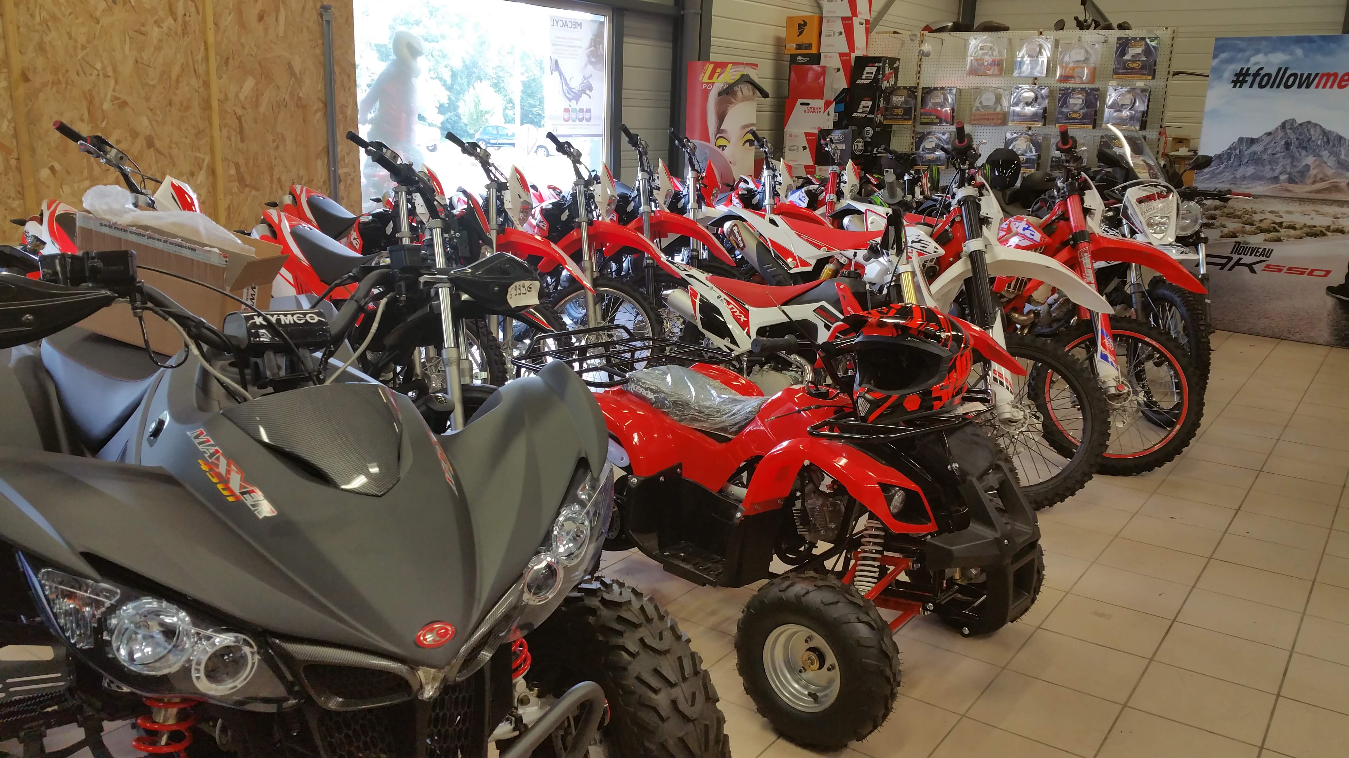 Magasin spécialisé pour les motards avec quads, motos et équipements. De bonnes promotions sur des prix déjà abordables. Équipe très agréable avec des conseils éclairés et honnêtes comme on le souhaite. Équipé d'un atelier, il est possible effectuer révisions et réparations. Motards : allez-y faire un saut. Parking et locaux offrant toute accessibilité aux personnes handicapées.
