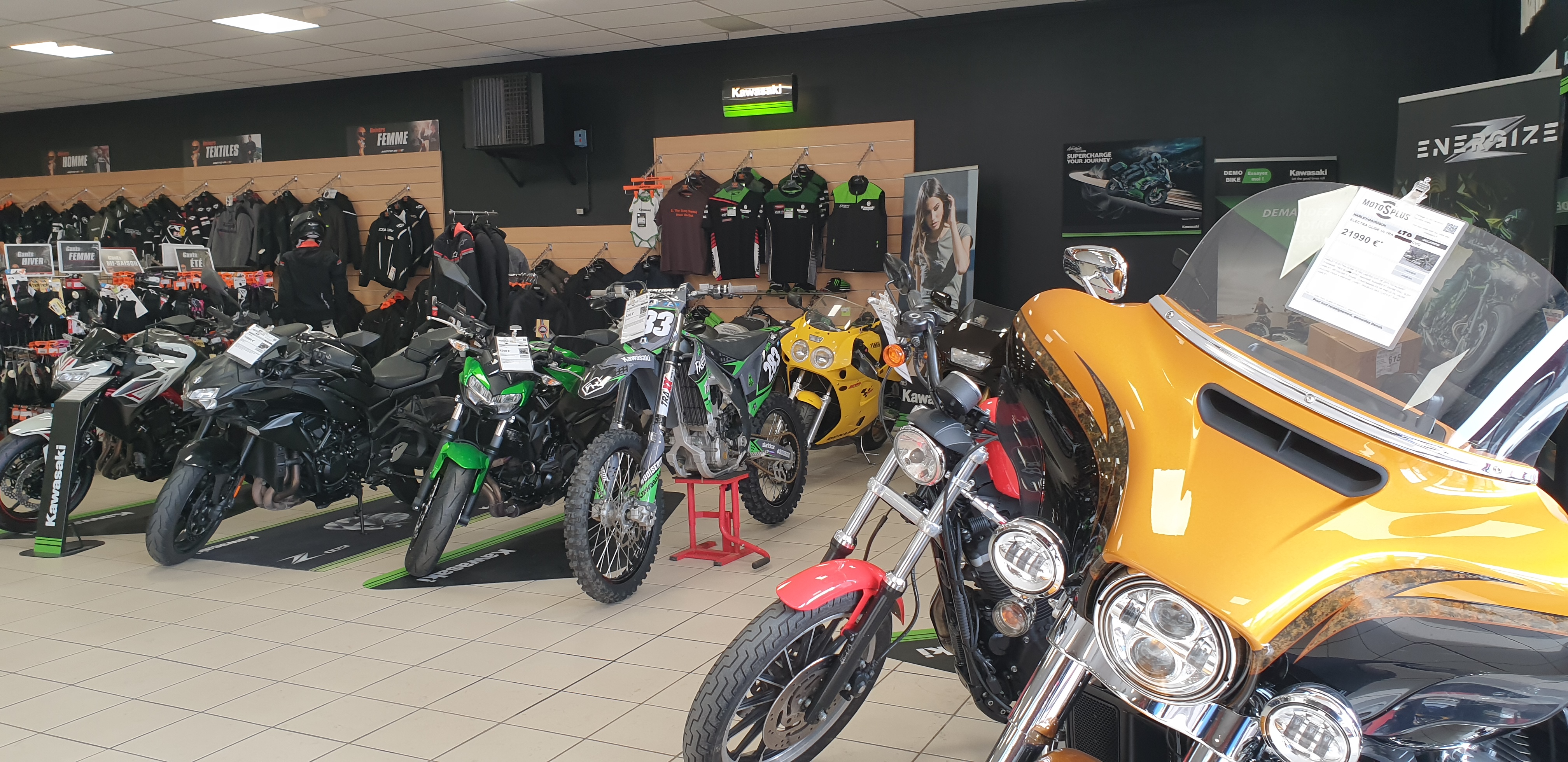 Grand choix de vélos. Yamaha et Kawasaki ainsi que d'autres marques.