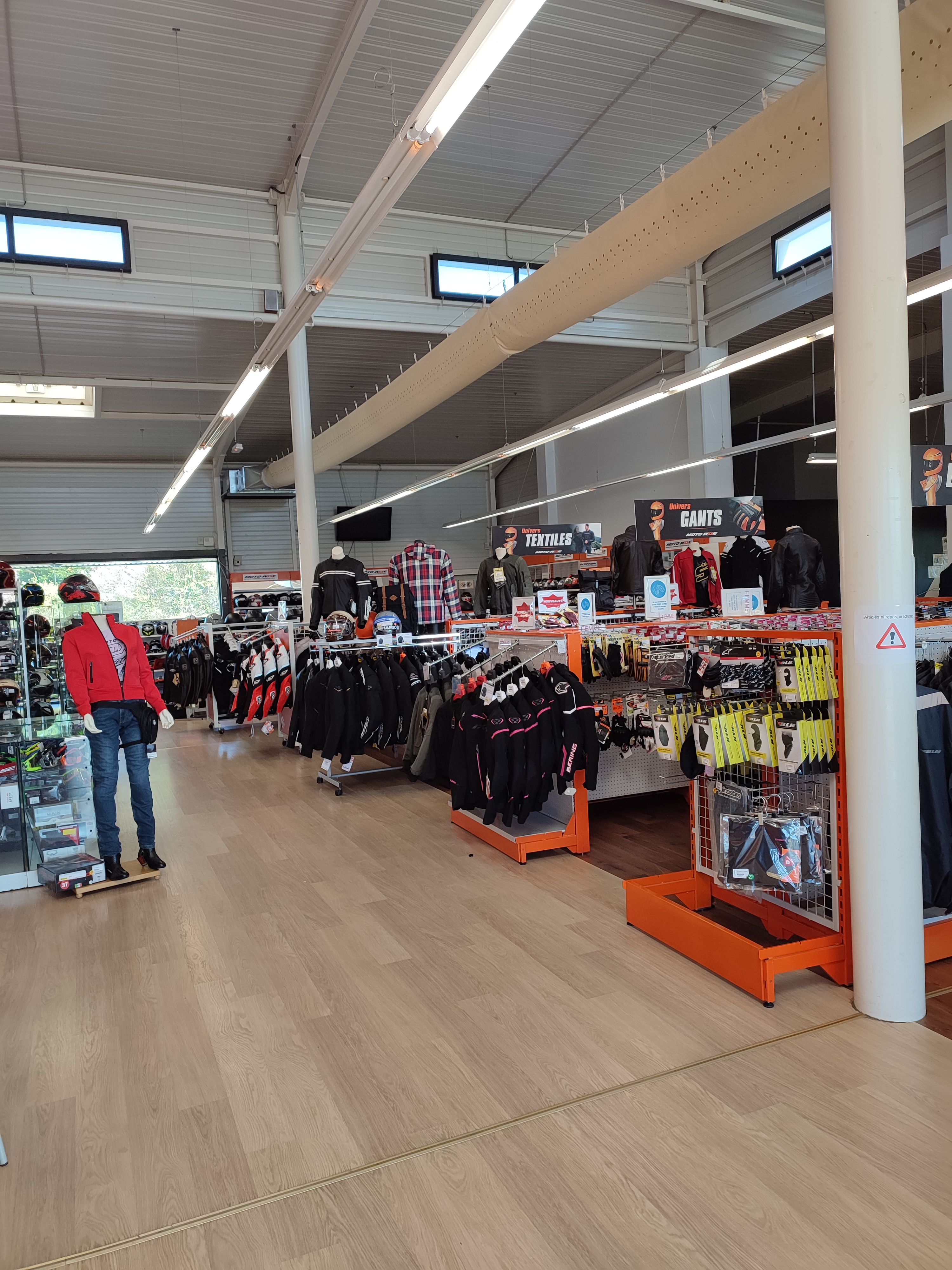Bel espace dédié à la moto et aux accessoires, personnel sympa + grand parking